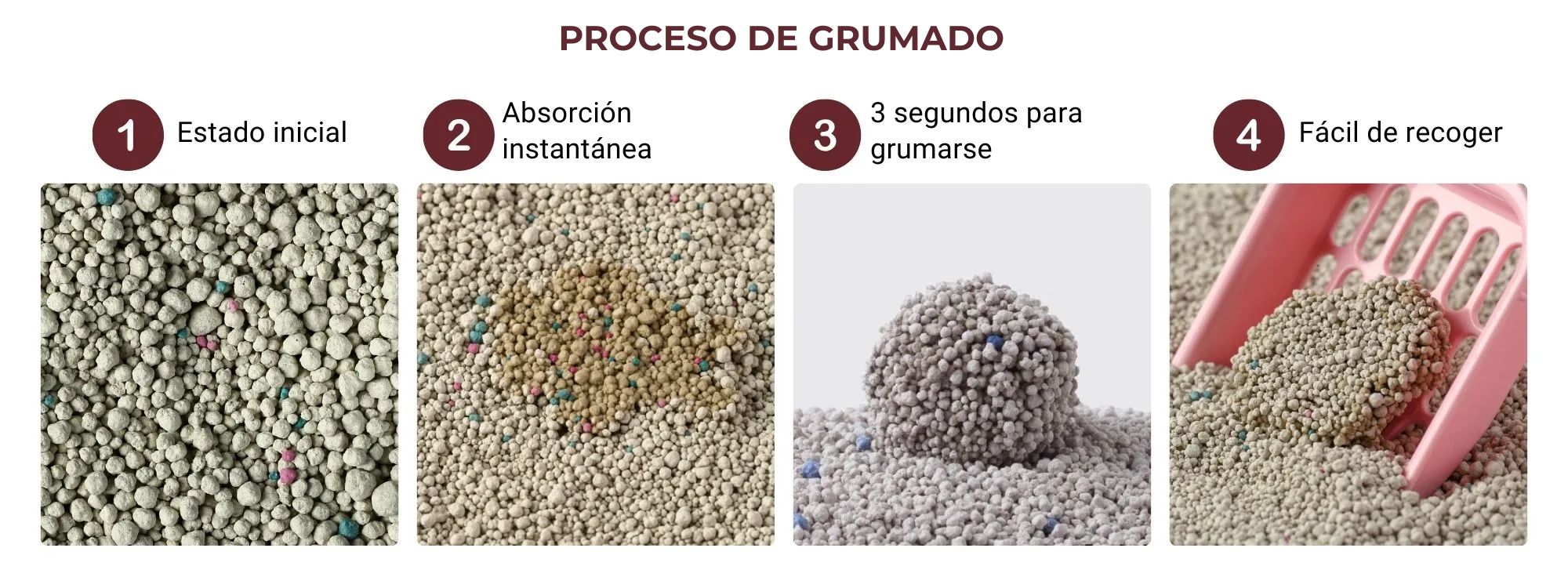 ✅ Aglomeración Rápida y Densa: Nuestra Tecnología ClumpLock retiene el líquido y el olor al contacto, formando grumos densos para facilitar la recogida y minimizar el desorden.