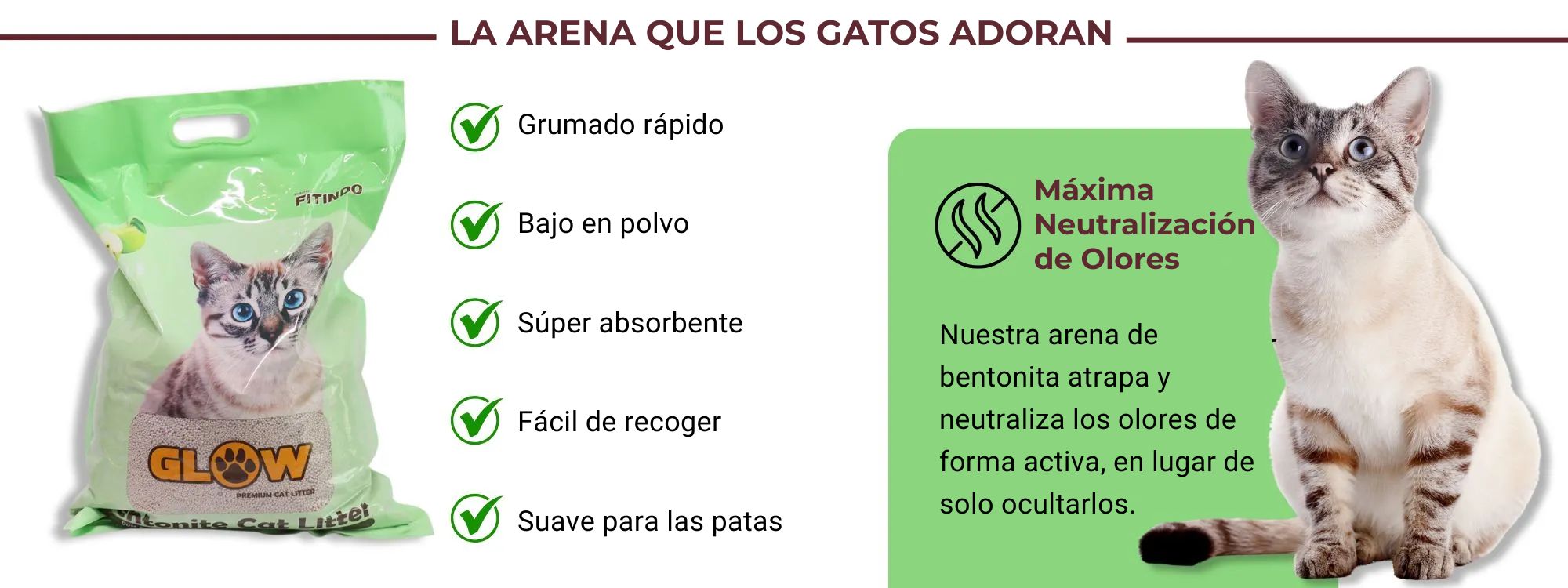 A diferencia de otros productos económicos, nuestra arena de arcilla bentonita para gatos está diseñada para una rápida absorción, manteniendo su bandeja sanitaria limpia y fresca con el mínimo esfuerzo.