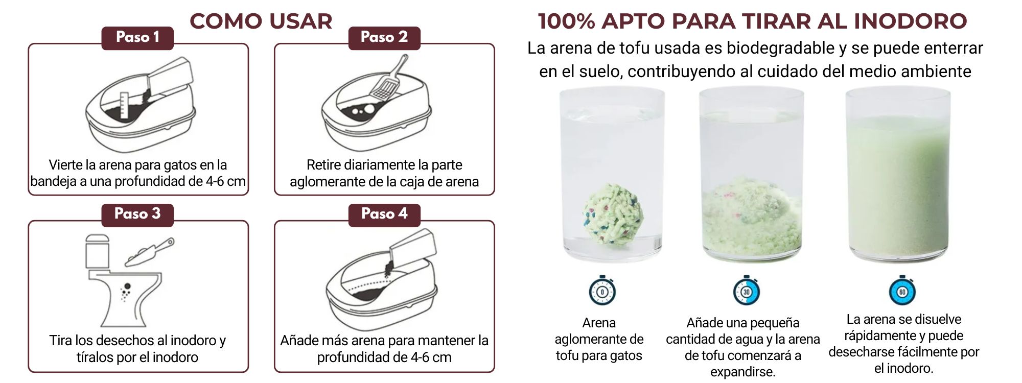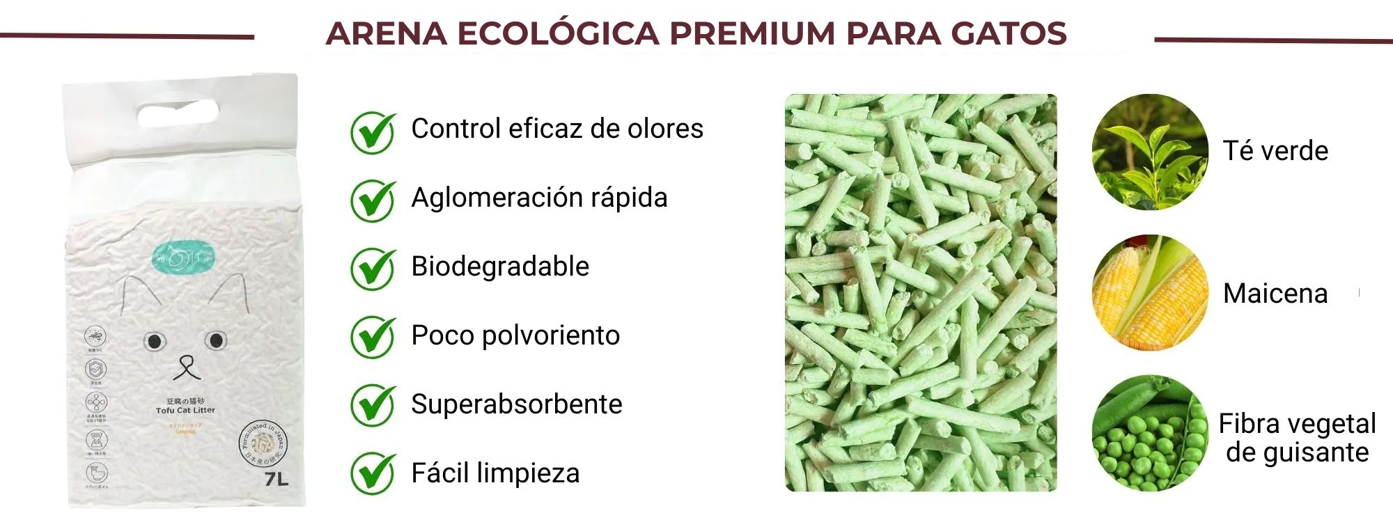 Nuestra arena para gatos de tofu con té verde es una solución natural y sostenible, diseñada específicamente para dueños de gatos que valoran la limpieza y el cuidado del planeta.