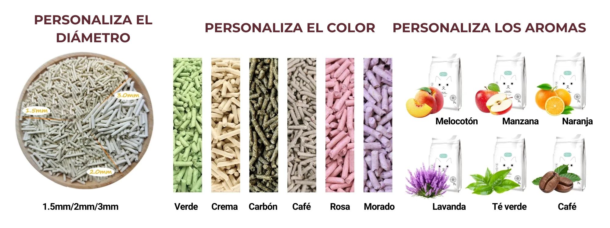 | Color | Personalizable (crema, verde, morado, marrón, rosa, café) |