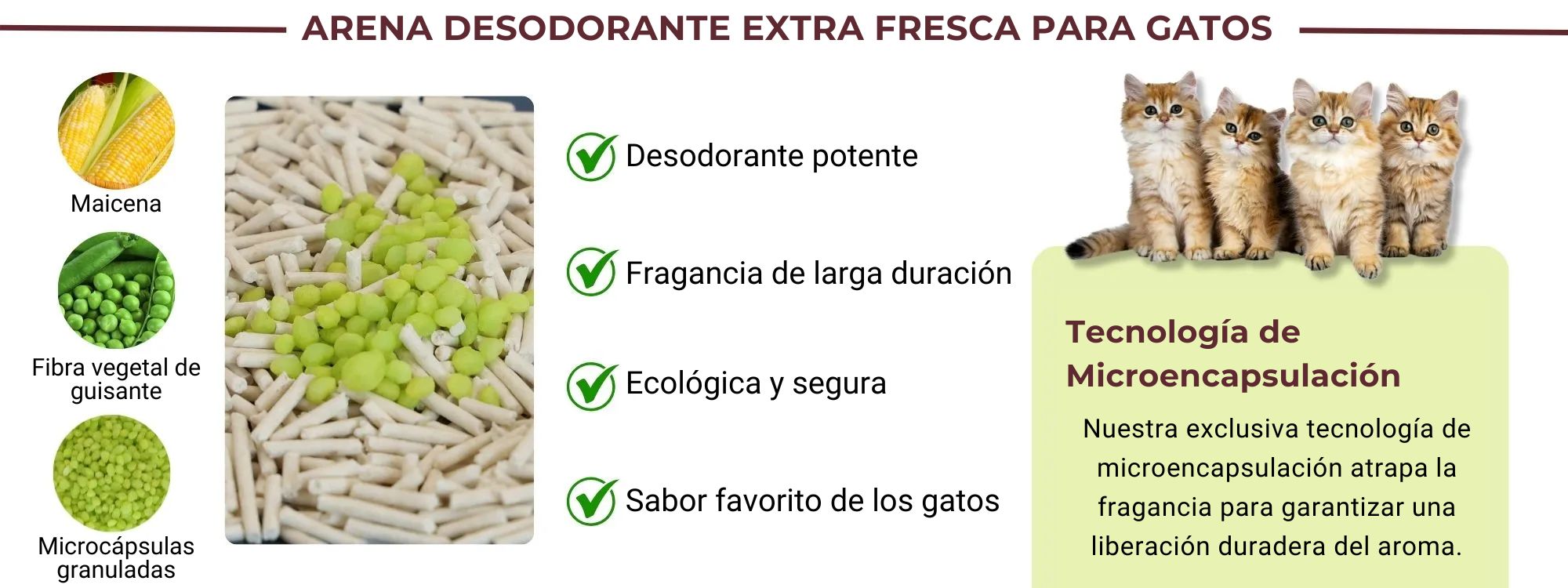 Tecnología Exclusiva de Microencapsulación que Bloquea Olores para Arena de Gatos