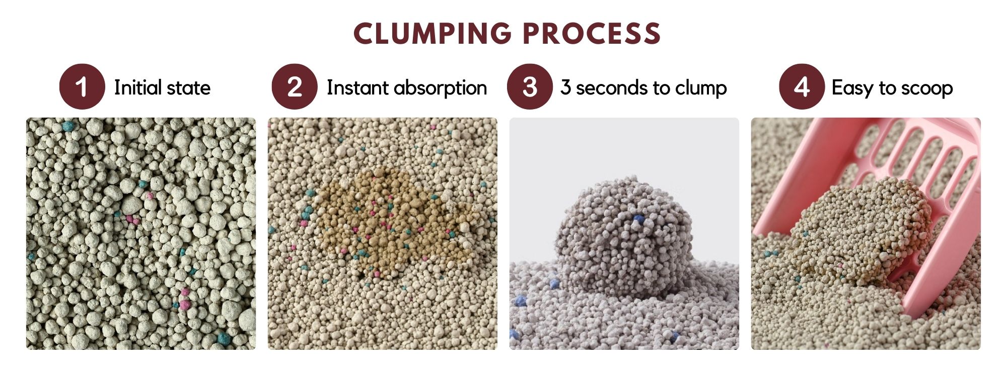 Slow absorption can cause clumps to stick to the bottom of the litter tray, making them difficult to scoop. This can lead to the spread of bacteria. If clumps can’t be scooped, you’ll need to dispose of all the litter to clean the tray and prevent bacteria buildup, resulting in total waste of the product.