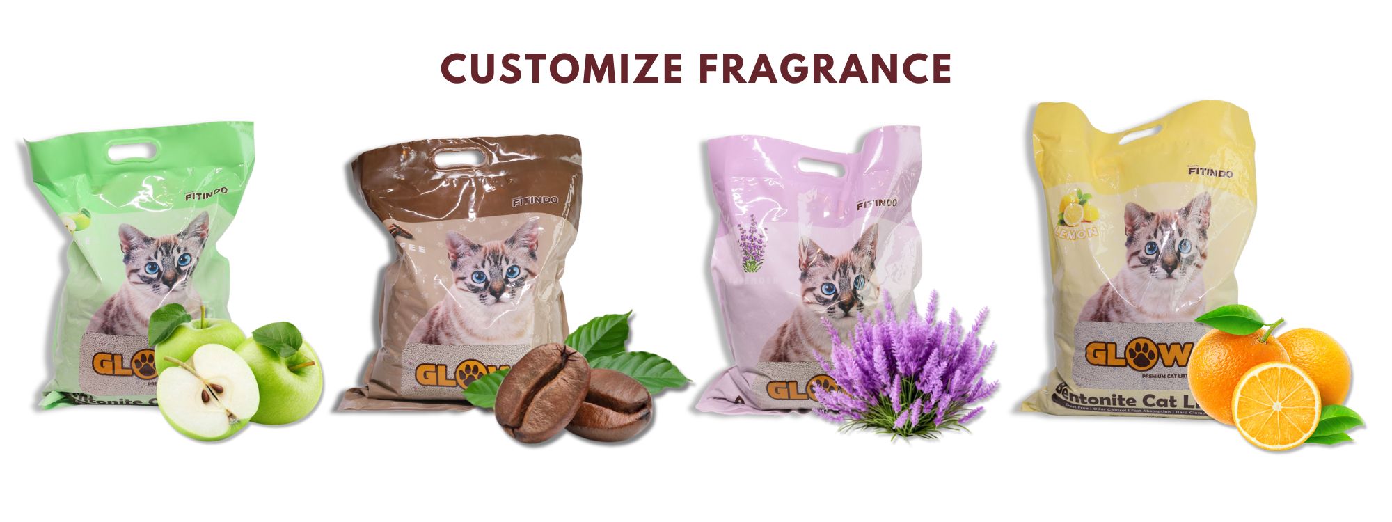 Besides customizable packaging, we also offer a range of options for scents. Choose from various fragrances such as apple, lavender, orange, coffee, and so on to enhance the litter experience for your furry friends.