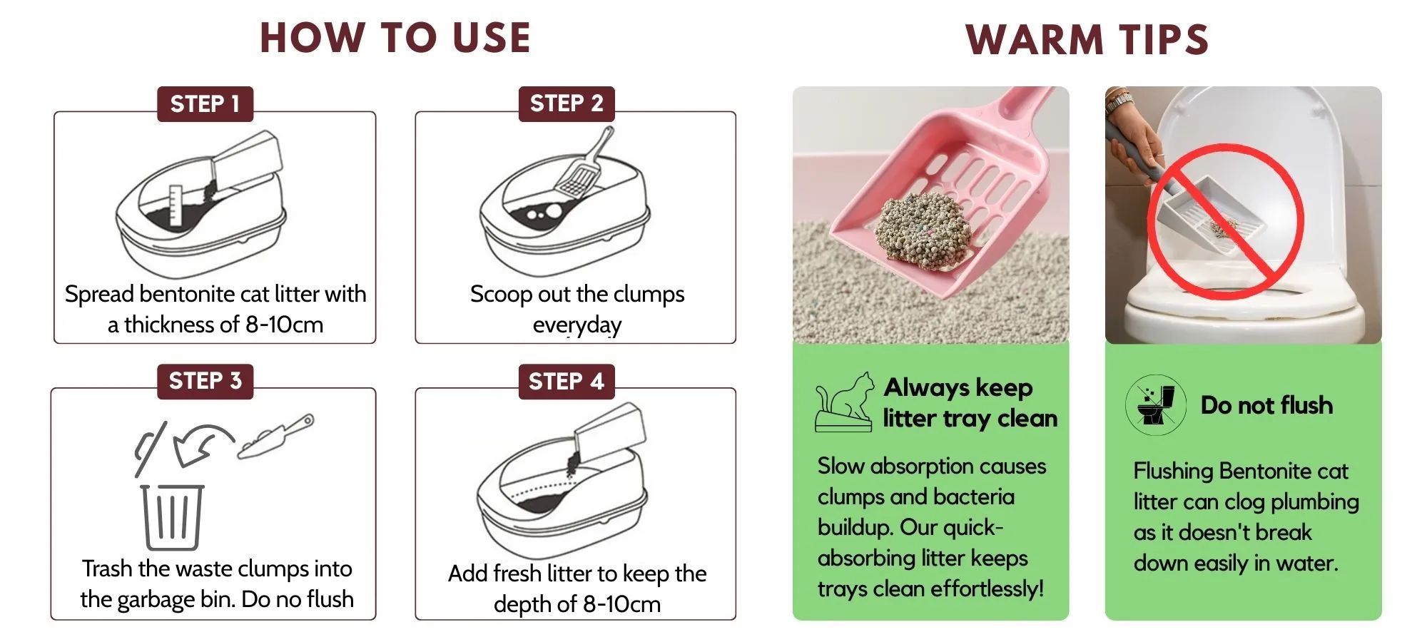 Unlike other cheap product, our cat bentonite clay cat litter is designed for quick absorption to keep your litter tray clean and fresh with minimal effort.